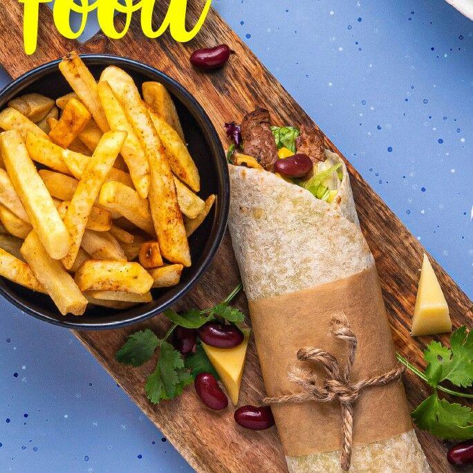 Үхрийн хэрчсэн мах, холимог шош, улаан лоолийн сүмс, шарсан төмс