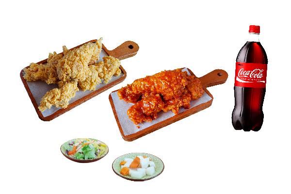 Бүрж шарсан тахиа-7ш, чихэрлэг соустай тахиа-7ш, цагаан манжин, ундаа