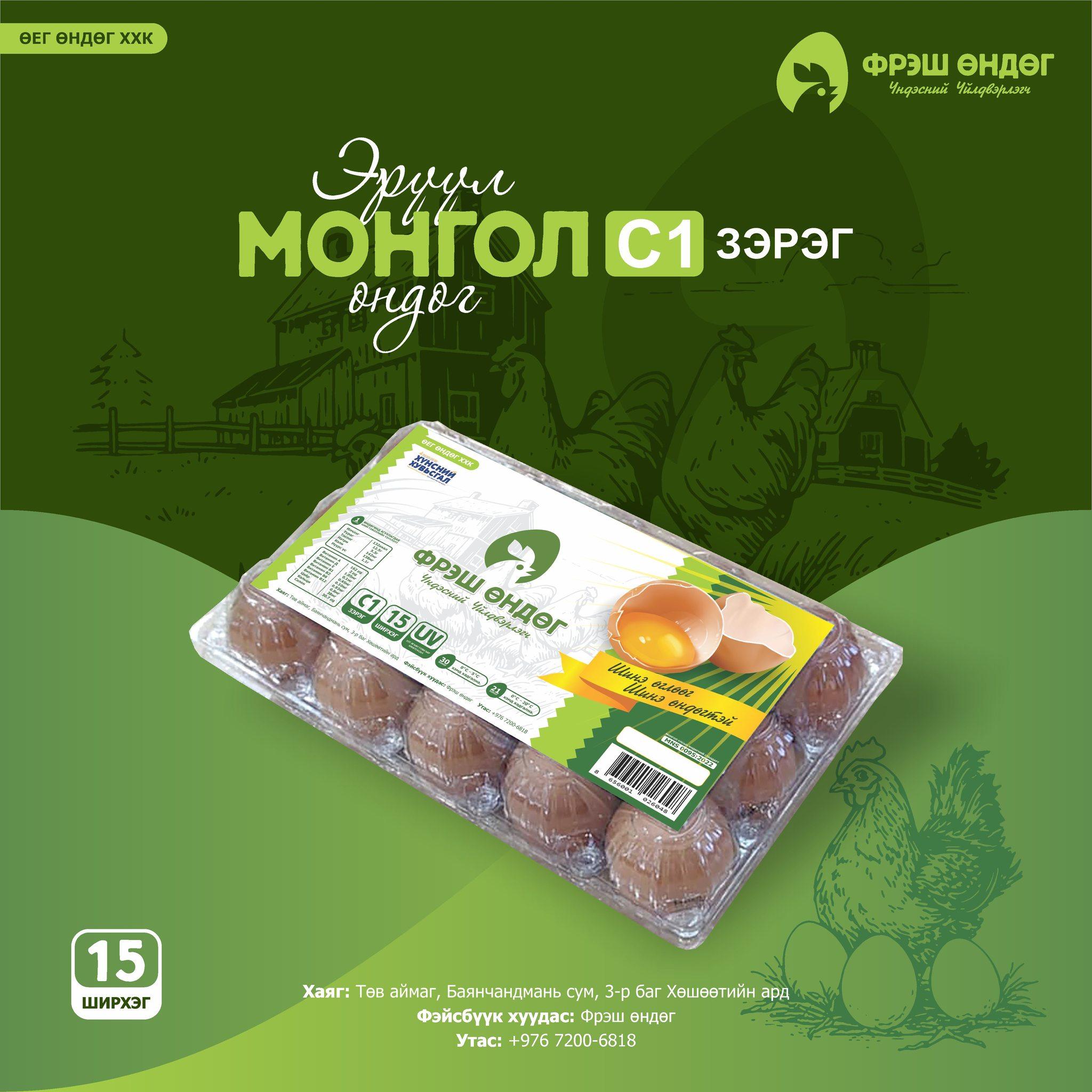 Өдөр бүр шинэ байдлаар ангилан савлагдсан C1 ангиллын өндөг.